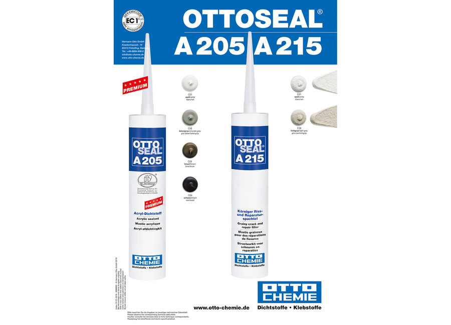 Bestel nu uw kleurenkaart met de kleuren van Ottoseal A205/A215 en maak de juiste kleurkeuze voor uw project. Direct leverbaar, bestel nu.